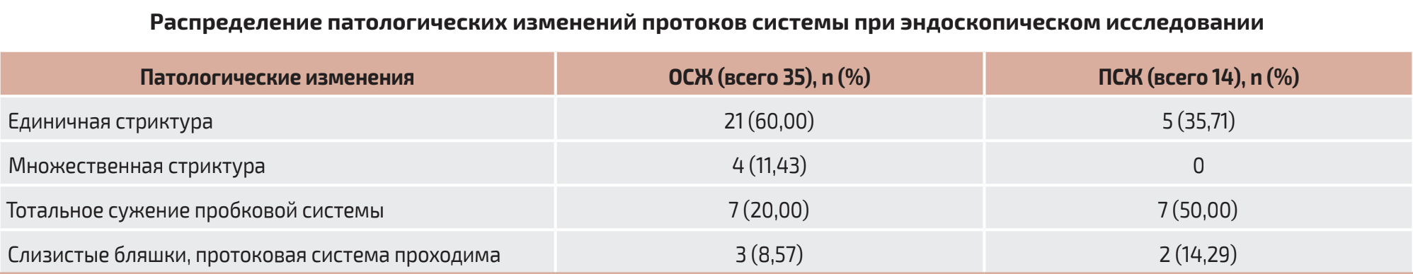 Результаты. Клинические симптомы могли затрагивать различные слюнные железы, чаще всего поражению под- вергались околоушные слюнные железы с двух сторон (36%), а первичные проявления по данным анамнеза на-блюдались в период от 6 мес до года (35%). У 16 пациентов из 28 (57%) присутствовали структурные изменения как минимум одной слюнной железы. При ультразвуковой визуализации расширения протока во время сиалоэндоско-пии в 15 случаях из 28 (54%) определялась единичная стриктура протока. При сиалоэндоскопии обструктивные из-менения протоковой системы были представлены слизистыми бляшками, стенозами, стриктурами, которые могли быть единичными, множественными или тотальным сужением. При обнаружении протоковой обструкции проводи-лось ее устранение, восстанавливалась проходимость протока.