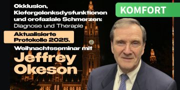 Okklusion, Kiefergelenksdysfunktionen und orofaziale Schmerzen: Diagnose und Therapie. Aktualisierte Protokolle 2025. Weihnachtsseminar mit Jeffrey Okeson. Teilnahmeoption "Komfort"